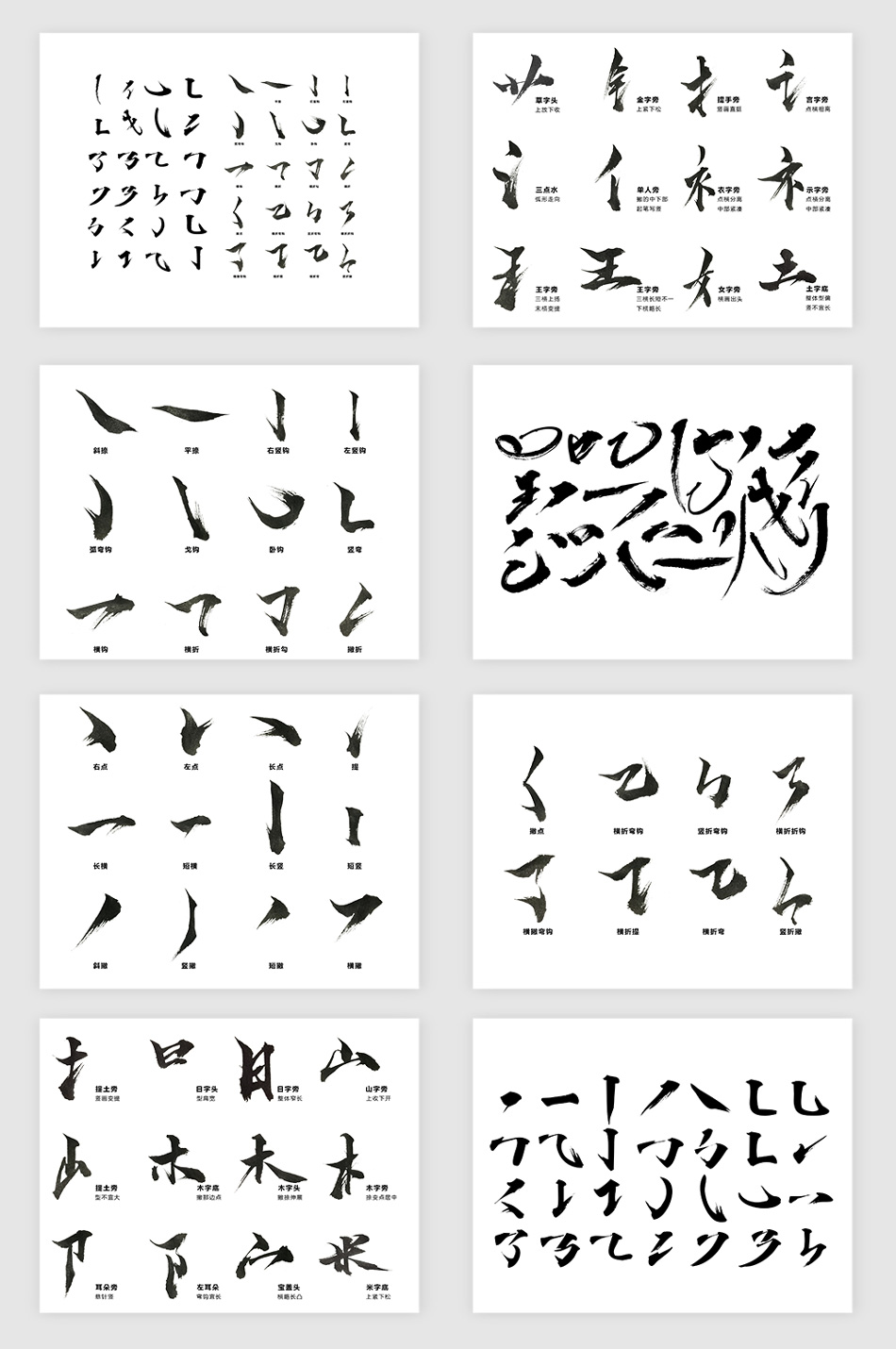 多款毛笔字体偏旁部首笔刷PNG素材