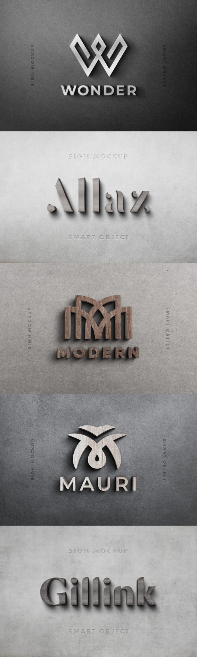 5款混凝土墙面金属与实木LOGO样机PSD模板