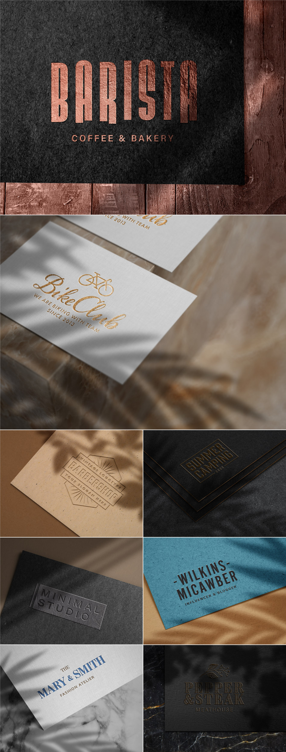 8款烫金烫印压印印刷工艺LOGO样机PSD模板