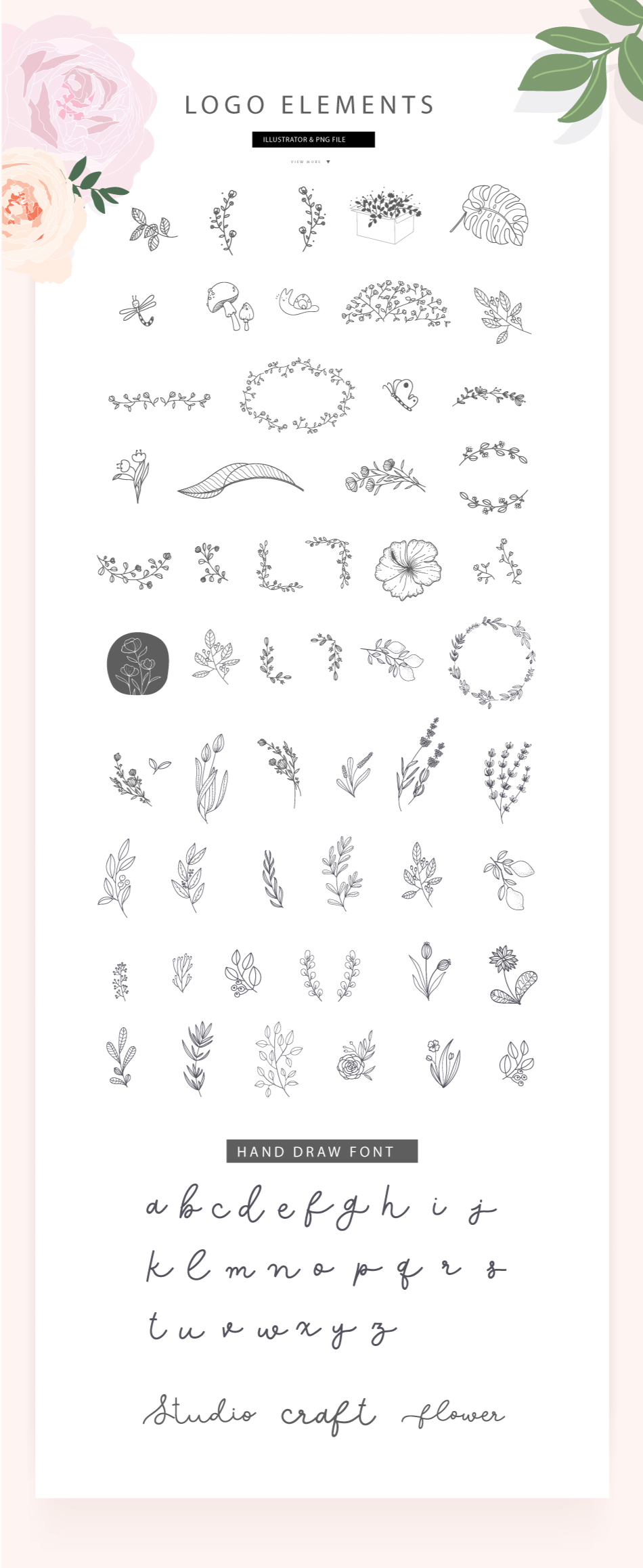 100+花草l线稿矢量图LOGO元素